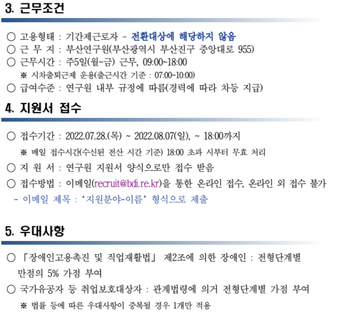 3. (접수방법) 이메일(recruit@bdi.re.kr)을 통한 온라인 접수