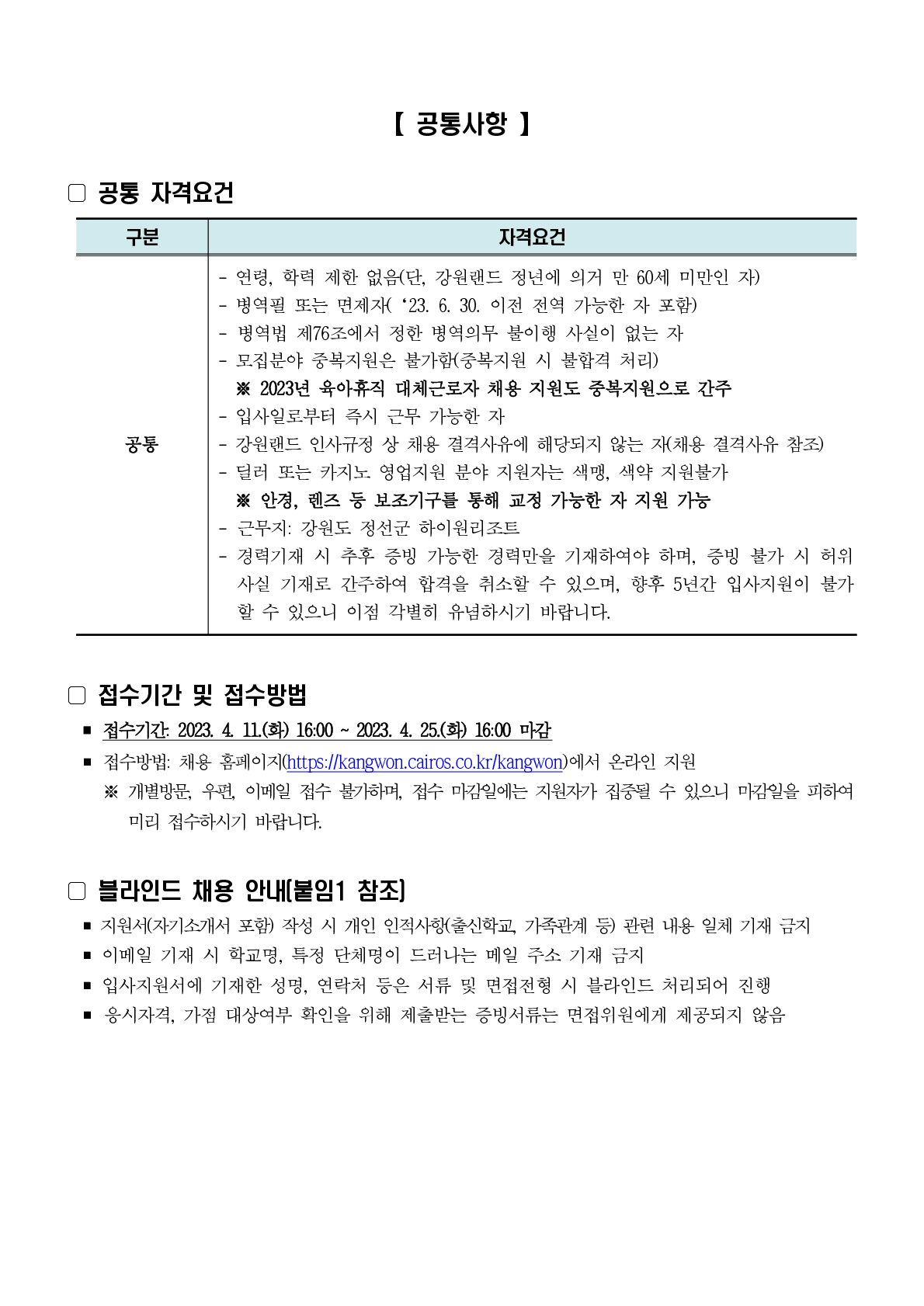 ▪ 접수방법: 채용 홈페이지(https://kangwon.cairos.co.kr/kangwon)에서 온라인 지원