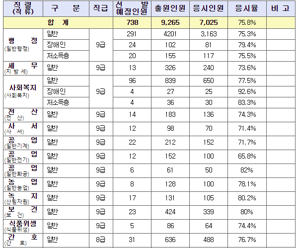 2021년도 제1회 지방공무원 임용 필기시험 응시율