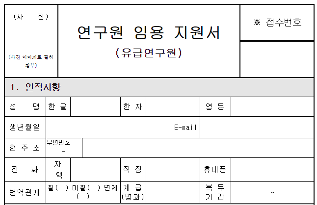 ① 연구원 임용 지원서 1부