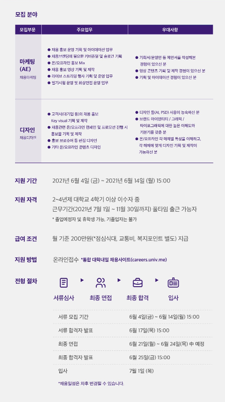 <지원방법> : 통합 대학내일 채용홈페이지 (https://careers.univ.me)에서 온라인 접수