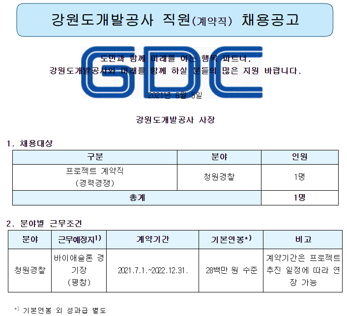 출처 - 채용정보 - 강원도개발공사 직원(계약직) 채용공고 읽기 | 강원도청 > 도정마당 (provin.gangwon.kr)